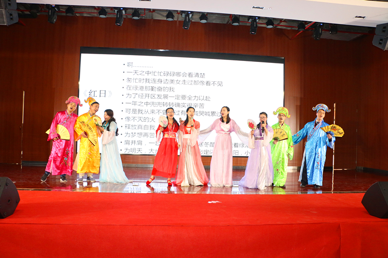 隨后,來(lái)自集團(tuán)工程管理部林重胤以及嘉通公司潘青青甜蜜獻(xiàn)唱《告白氣球》,讓大家感受到了愛(ài)情的絲絲美好。嘉通公司的《夸夸咱公司》,用三句半的表演形式唱出了綠港集團(tuán)濃濃的企業(yè)文化情愫,也展現(xiàn)了綠港員工積極、拼搏、向上的精神。《我要回綠港》、《聲臨其境》、《好運(yùn)來(lái)》、《愛(ài)》、《好嗨喲》等多個(gè)節(jié)目在觀眾的熱情掌聲中聯(lián)袂奉上一場(chǎng)精彩演出,整個(gè)活動(dòng)歌聲笑聲、熱烈的掌聲匯成了歡樂(lè)的海洋。集團(tuán)營(yíng)銷管理中心的《四小天王齊賀歲》以及集團(tuán)計(jì)劃運(yùn)營(yíng)部、紀(jì)檢監(jiān)察審計(jì)部、安全監(jiān)督部聯(lián)合帶來(lái)的《蒙面唱將猜猜猜》將活動(dòng)推向高潮,現(xiàn)場(chǎng)掌聲不斷??彀濉毒G港贊歌》道出了綠港集團(tuán)成立五載,綠港人用智慧和汗水所取得的成效。最后,集團(tuán)領(lǐng)導(dǎo)班子壓軸出場(chǎng),帶來(lái)詩(shī)歌朗誦《相信未來(lái)》,贏得陣陣掌聲,讓大家堅(jiān)定了信心、鼓足了干勁,對(duì)美好生活更加熱愛(ài)和向往。