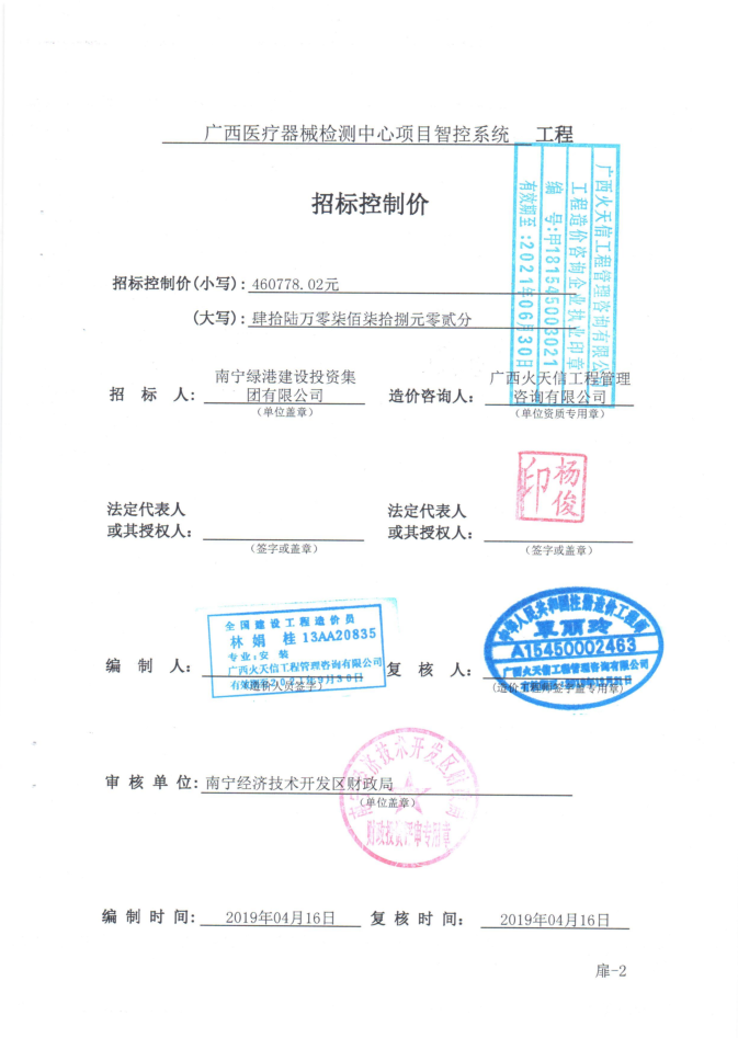 附件:廣西醫(yī)療器械檢測中心項目智控系統(tǒng)工程招標(biāo)控制價