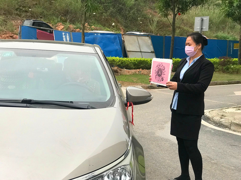 萬方公司創(chuàng)意物業(yè)服務中心副主任黃春芳為進出園區(qū)車輛做掃碼登記