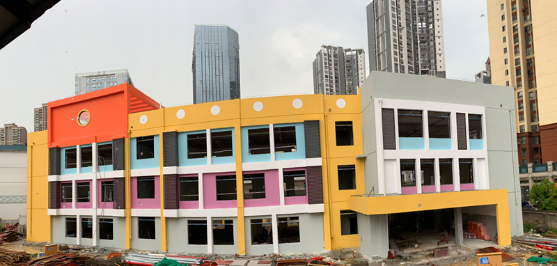 據(jù)悉,經開區(qū)實驗幼兒園作為經開區(qū)2020年一項重點民心民生工程,項目總投資1600萬元,項目包含幼兒園用房和室外活動場地及綠化用地,總占地面積5368.02m2(8.05畝),總建筑面積約為4677.35 m2,地上4層,12個班教學規(guī)模。在綠港集團的精心部署下,項目自2019年9月24日開工以來,各項工作取得較大進展。目前,該項目已完成室內貼磚與外墻涂料工作,正在進行室內衛(wèi)生間潔具、吊頂、門窗、水電、消防安裝工作,力爭于2020年9月份交付使用。